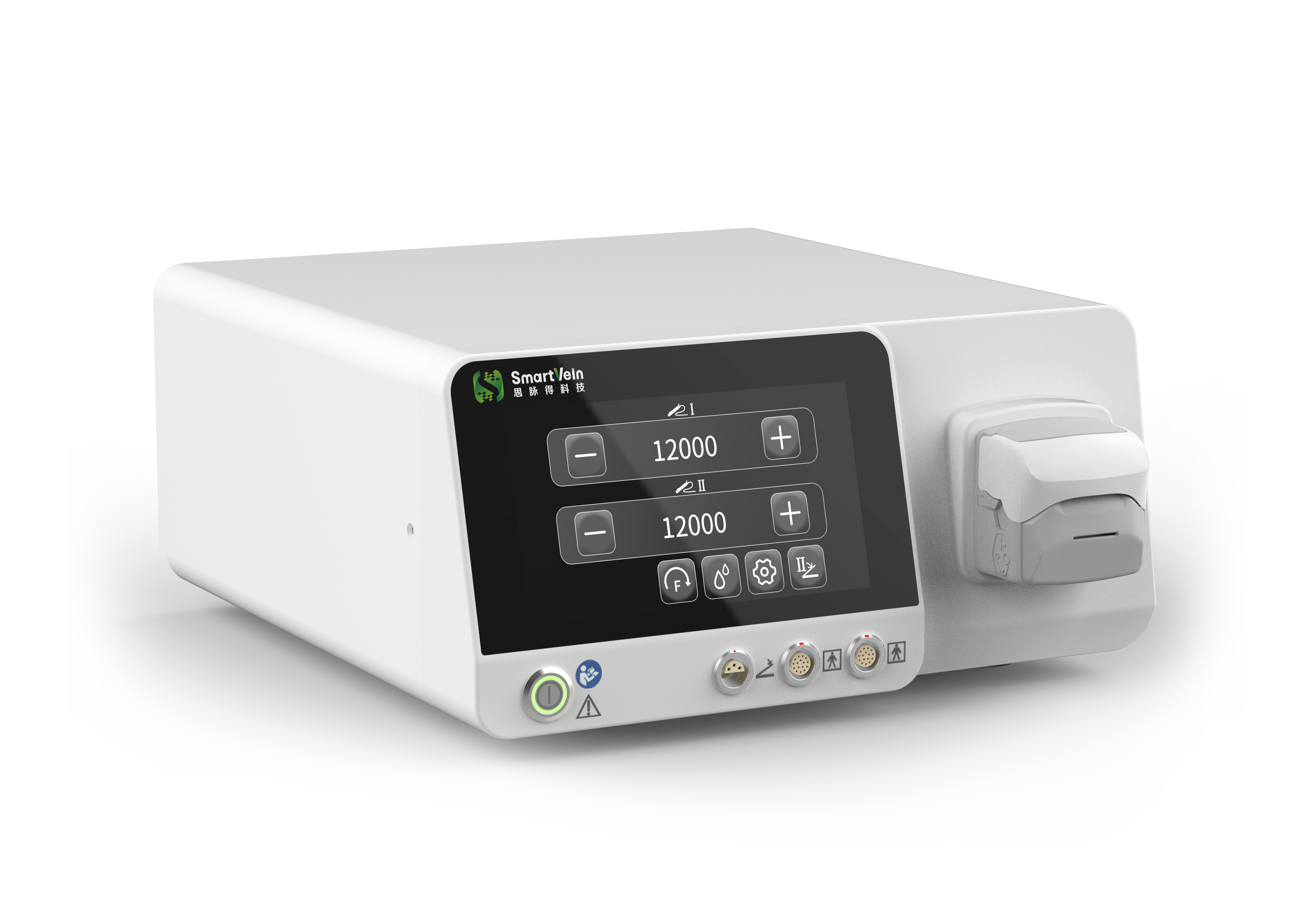 动力系统主机由网电源供电,驱动动力装置,动力装置为工具头提供机械动力驱动工具头旋转或往复运动实施对人体组织或异物切割切开、削磨、钻孔、敲击等操作。